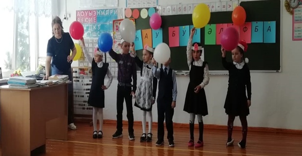 Азбука пришла со «старшей сестрой» - Литературное Чтение. Роли героев праздника исполняли обучающиеся 5 класса (Минигулова Рияна и Мурзакамалова Гульгена).